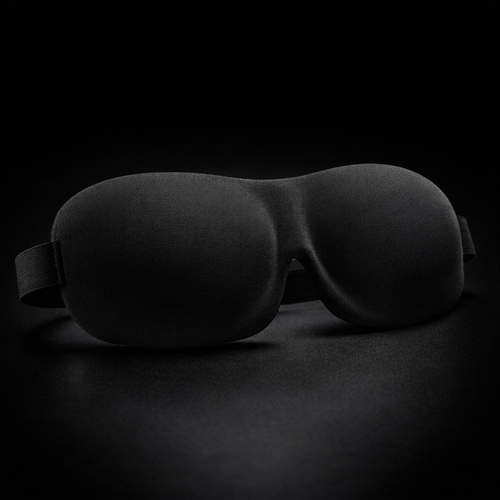 A soft blackout mask designed to make the room feel darker, calmer, and more sleep-ready.